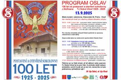 100 let od postavení a otevření sokolovny 1925-2025 Termín konání : 13.9.2025, 7:30 Zobrazit detail akce